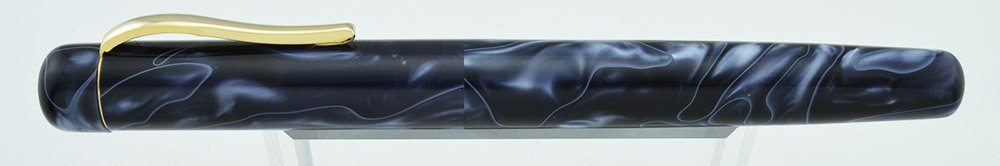 Color This pen has the acrylic body in the Grey White finish. The color-pattern is a smoky blue-grey, one of the nicest acrylics Ranga has used. The clip is gold colored, and can be removed for a sleeker look.