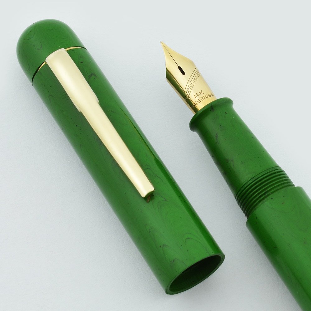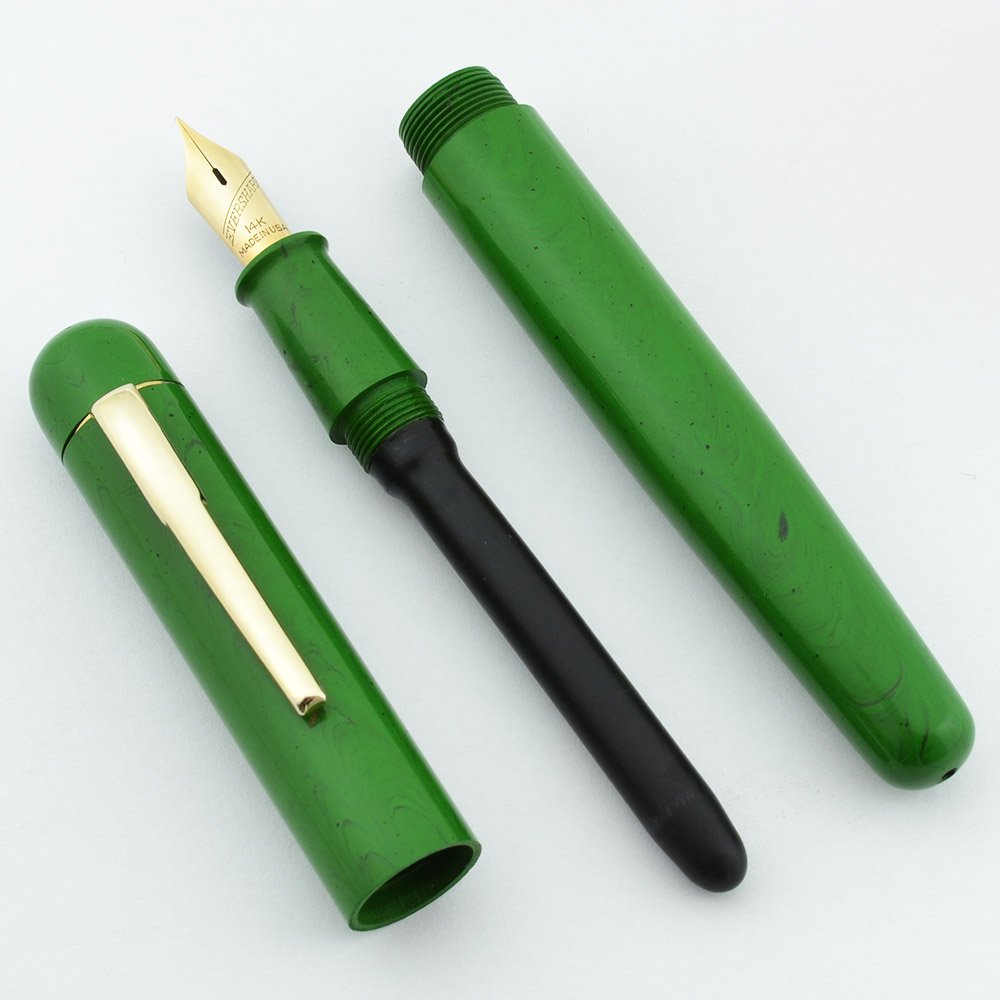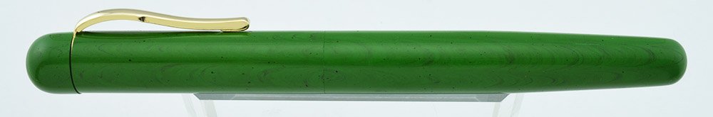 Color This pen has the solid green smooth ebonite color, deep natural green with some tiny black flecks. The clip is gold colored, and can be removed for a sleeker look.