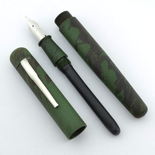 Color Matte mottled green ebonite. Silver colored clip.