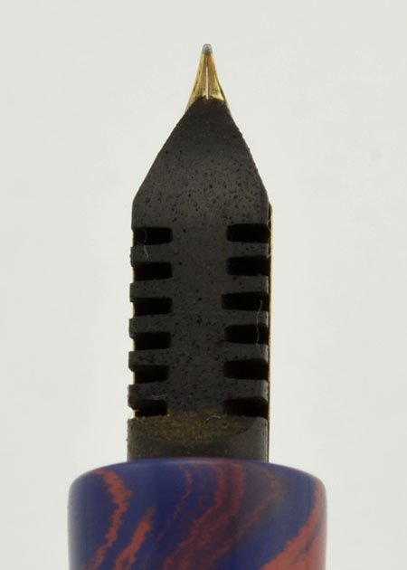 Type | Blow-filler fountain pen made of Indian ebonite (hard rubber) and fitted with a vintage flexible nib |