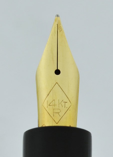 Nib FLEXIBLE FINE vintage Canadian 14k nib. It's smooth and in nice condition with good tipping material remaining. Just a little less than what we would call fully flexible, with easy line variation from fine to a nice large broad with just a little pressure. We're not sure who made it. See writing sample below.