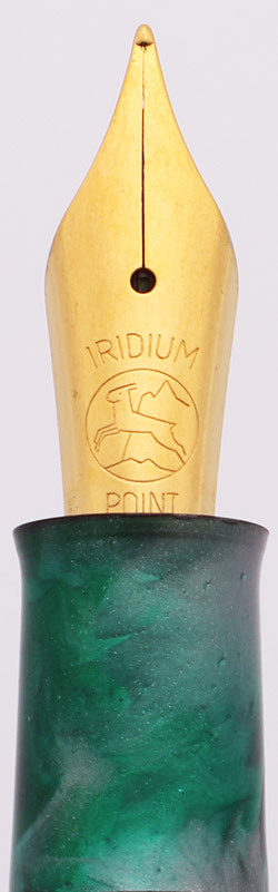 Nib MEDIUM-FINE gold plated steel nib. It is an unmarked Bock nib. Not marked as to size.
