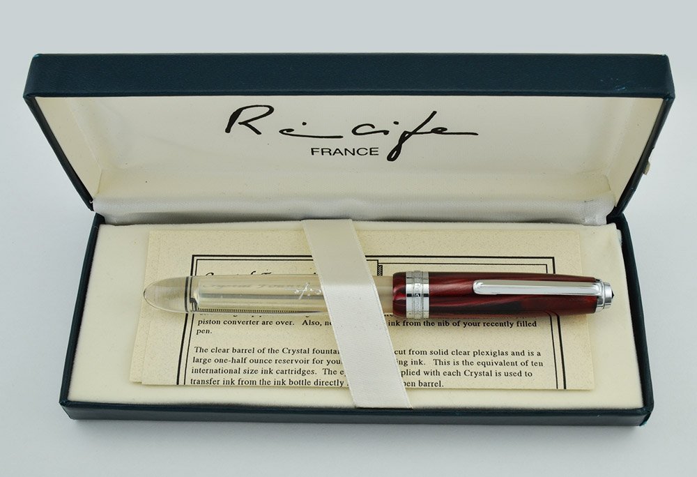 Condition Excellent Condition. There's a little wear on the cap band and clip and some ink residue in the threads. The clear barrel looks excellent. Ships in a Recife box with instructions and guarantee card.