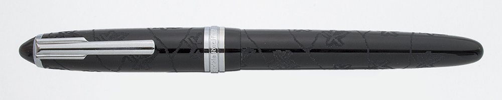 Color Black pen with a wide clip and an etched leaves and branches pattern. The section is a bit more matte than the rest of the pen. The trim is silver colored.