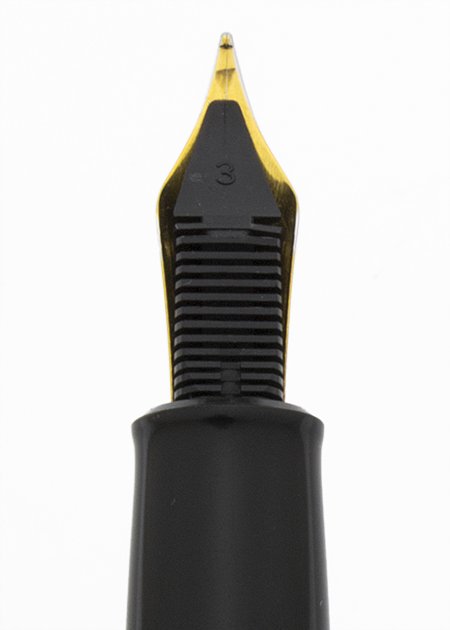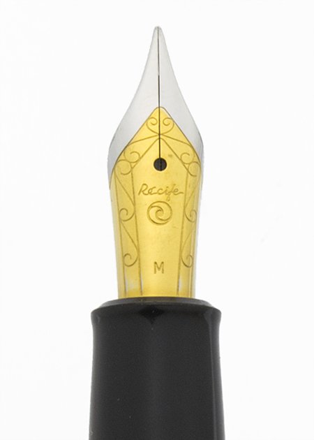 Nib Medium two-tone nib. It's smooth and has lots of tipping material. The nib is marked M.
