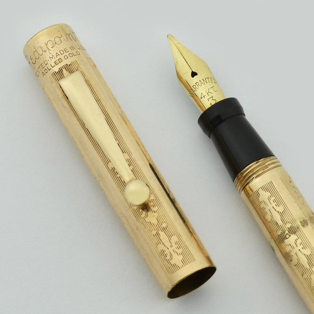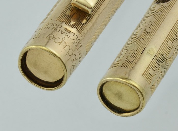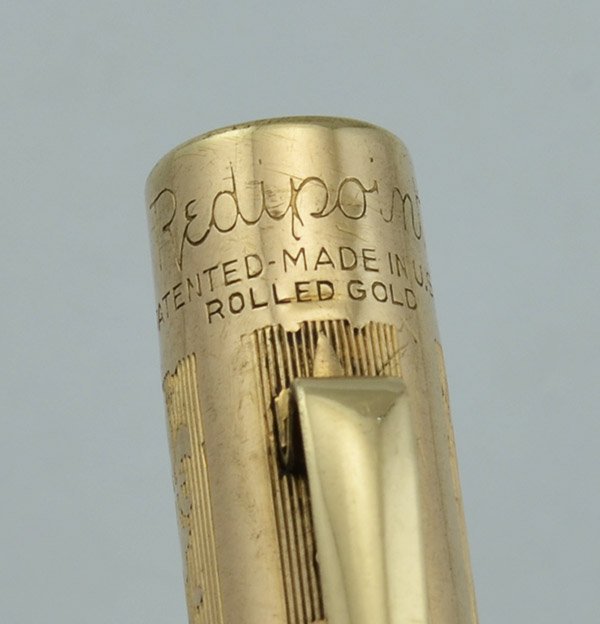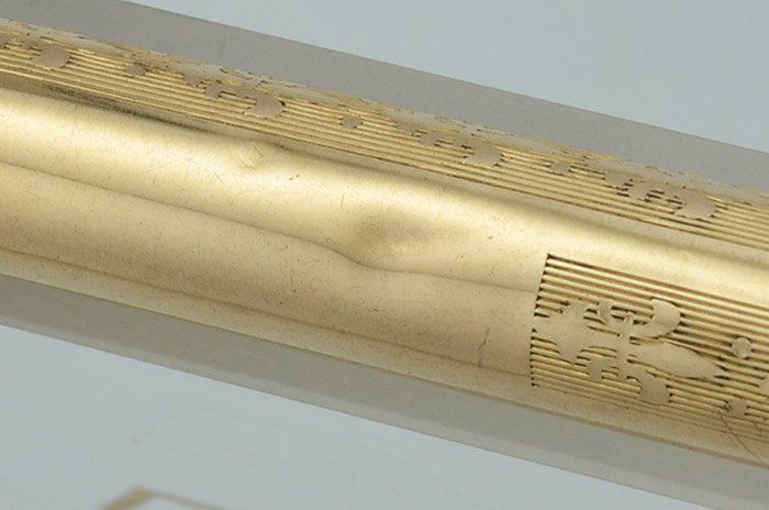 Color Rolled gold cap and barrel with fleur de lis pattern, and with gold filled trim.