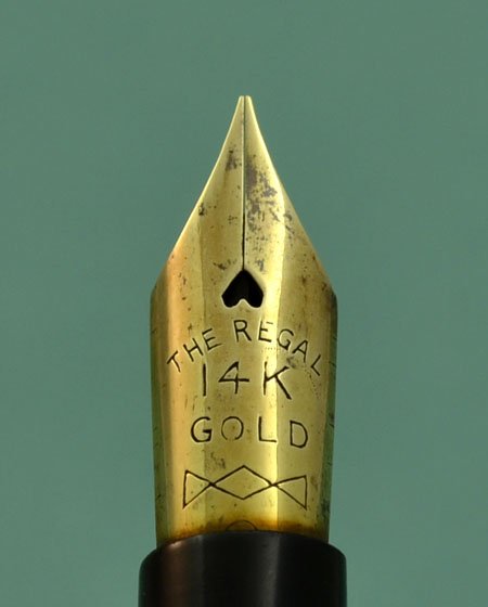 | Nib | The nib is marked "The Regal 14k Gold" but we are almost positive the nib is not gold, just gold plated. It's in nice condition, but it is obviously a cheap nib with no tipping material. |
