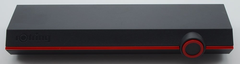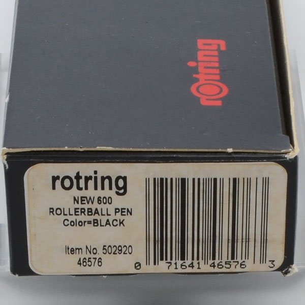 Condition Excellent + condition with no cracks, chips, dents, or dings. This is an industrial-looking pen in the classic Rotring style that comes in a Rotring box. There is some light wear near the section where the brass is showing through. The cap has a strong click-on mechanism. The imprints are clear.