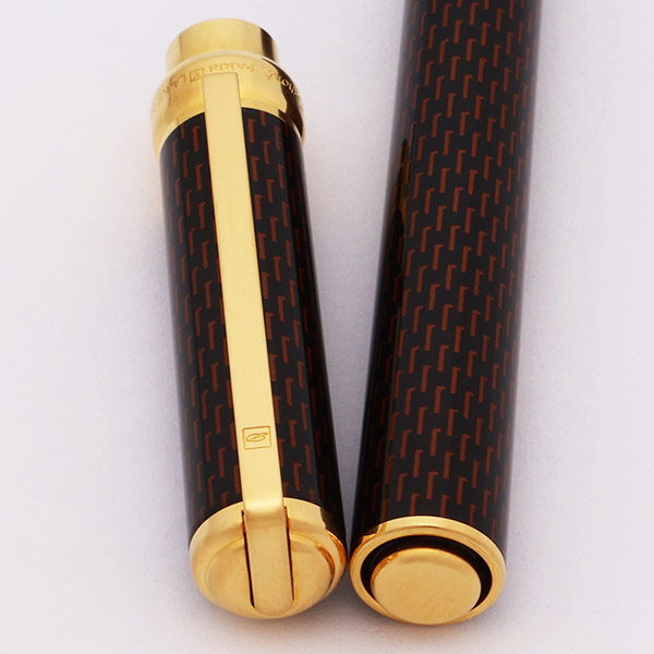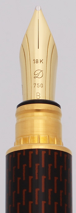 Filling System Takes older S.T. Dupont cartridges and converters or Parker style cartridges and converters. A Dupont piston converter is installed. To access the converter, you need to unscrew the short section, which can be a little tricky because it's hard to get a grip on and possibly messy if the pen is inked. In order to start the section unscrewing, you put the cap on but don't push it on all the way so that it snaps, then turn it and the section will start to unscrew, and you can finish unscrewing it with your fingers.