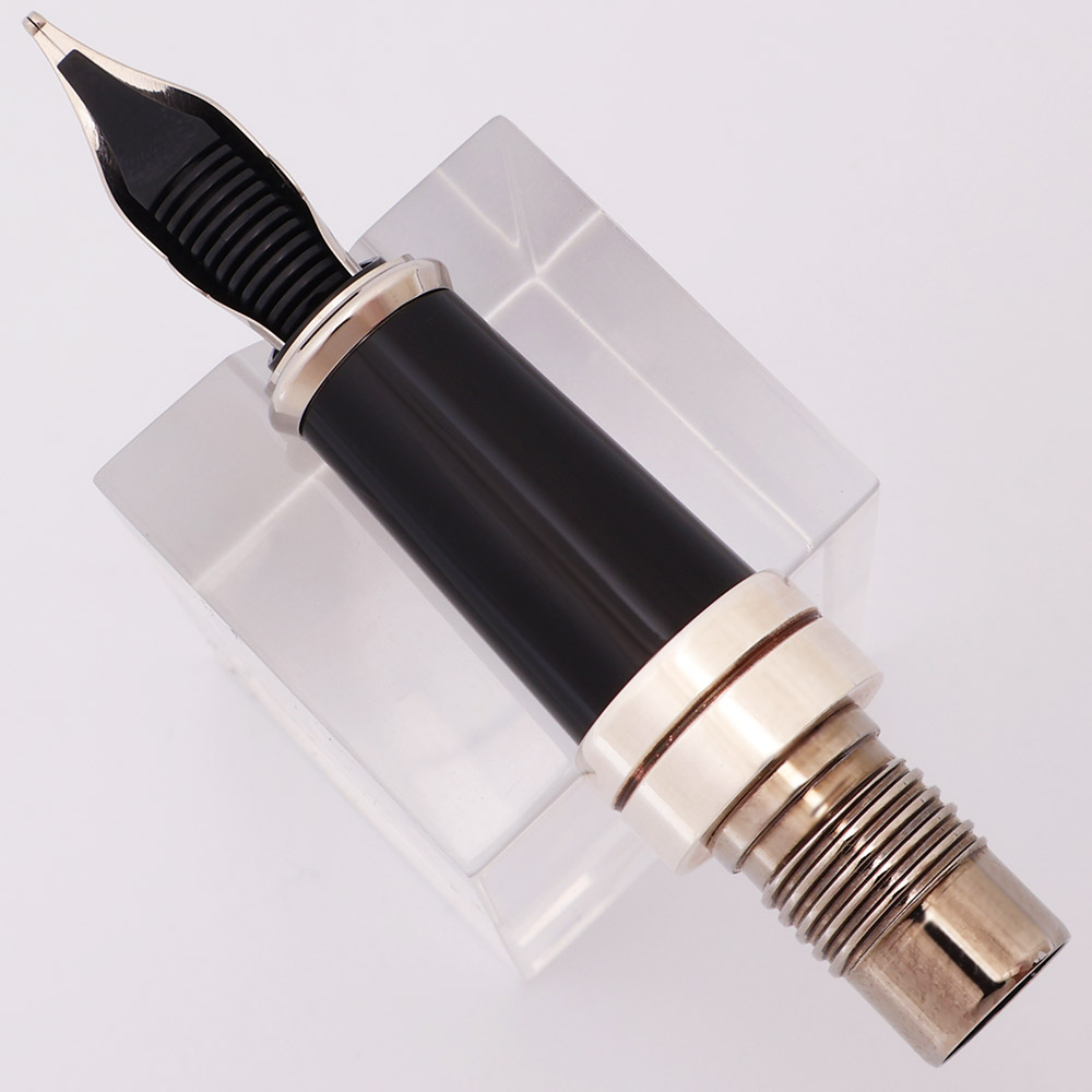 Color The nib itself is 18k gold and silver-toned, which may be rhodium plating, but we don't know for sure. The section is black, and the trim is silver colored metal.
