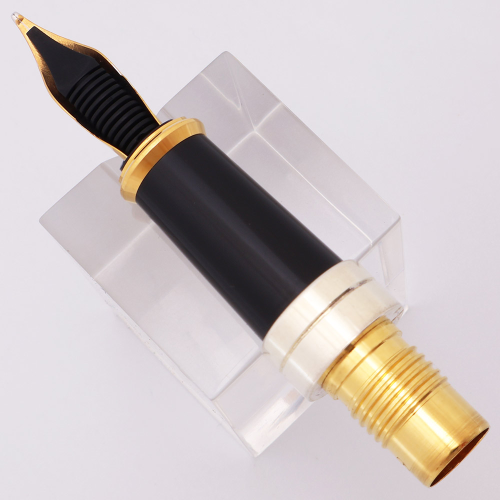 Color The nib is a two-toned 18k nib. The middle part of the section is black and there's a gold colored nib collar at the front and then a silver colored ring at the back end of the section. We believe the silver nib masking is rhodium, but we don't know for sure.