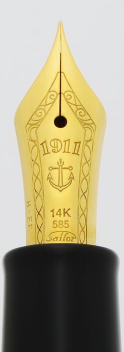 Nib EXTRA-FINE 14k nib. The nib is labeled, "H-EF" which stands for hard extra-fine. The nib is mostly firm with only slight give. Since Japanese fines are on the extra-fine side, this will give you a very thin line.