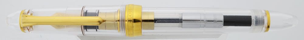 Filling System Takes a Sailor converter, and cartridges. The box includes one ink cartridge and a converter is installed and can be seen through the clear exterior..