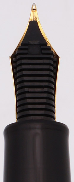 Nib Naginata Medium-Fine (N-MF) 21k nib. We're not sure who exactly did the nib grind, whether it was done prior to the death of the senior Nagahara.