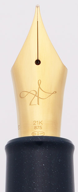 Nib Medium 21k nib, with a special engraving of "21" commemorating the year as well as the gold content of the nib. The nib is labeled "M".