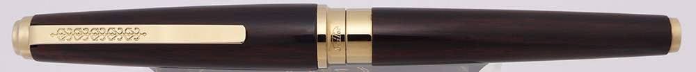 Condition Excellent + condition. There is light microscratching and handwear on the cap and barrel. The gold trim - all of it - looks fantastic, with barely any marks, and no brassing or plating wear. The section does have scratching from the cap lip. The imprints are clear. The pen ships in a velvet-lined wooden box with some paperwork, though it's not entirely clear that these were original to the pen.