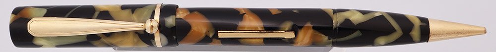 Condition Excellent condition. There is light scratching on the cap and barrel. There are marks on the barrel where he cap screws on. The lever has light scratching on the top surface and plating wear along the sides. There are marks near the pencil end, likely caused by posting the cap. The nose cone has plating wear around the tip. The cap looks quite good. There are some rough spots on the cap lip, but no cracks or chips. The cap band has scratching and some brassing along the top edge. The clip has brassing around the ball end. The top of the cap has shallow tooth marks. The barrel imprint is slightly faded, but clear.