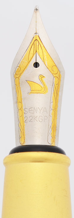Nib FINE two-toned steel nib. Marked "Senya 22KGP". Smooth with excellent tipping.