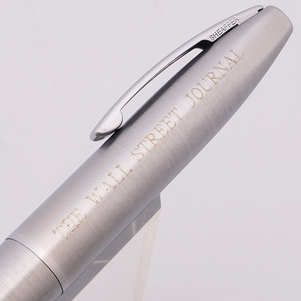 Color Brushed chrome/steel bodies with gold plated trim. Black section/nib unit. Inscription on the cap: "The Wall Street Journal."