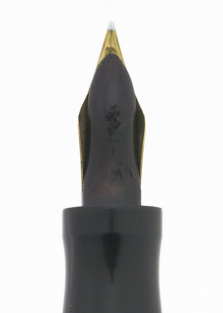 Nib Fine Flexible #2 "Self Filling" gold fine nib is in nice condition with a lot of tipping material. Almost full flex! The tines spread easily for strong line variation. Please see the writing sample below.