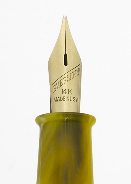 NIB Eversharp 14k flex nib (from a Skyline). It's smooth, with nice tipping material. See writing sample below.