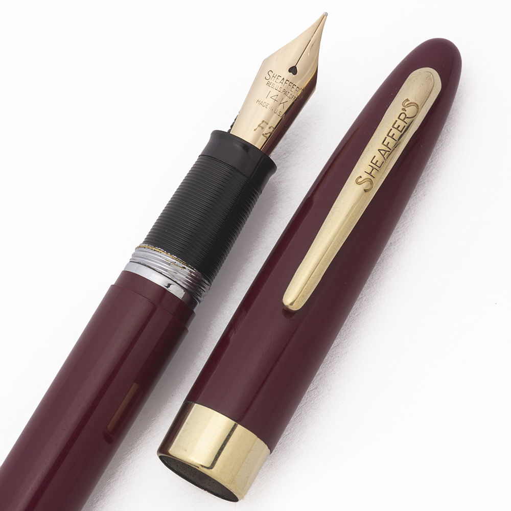 Condition Excellent condition with no cracks, chips, dents, or dings. This is a long, slender pen in a classic color. The barrel has light scratching with a little cluster of scratches at the top near the cap band. The cap has moderate scratching just above the cap band and around the top portion of the clip (both sides). The cap band and clip have light microscratching with some shadowy plating wear. The imprints are clear.