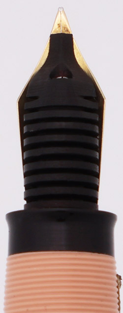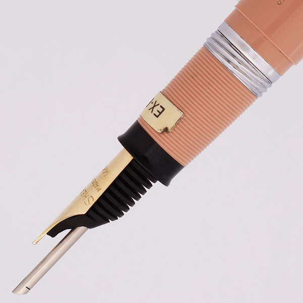 Nib EXTRA-FINE 14k open nib. It's marked on the nib, but there is a sticker present on the section (see pictures). It is in great condition, with a nice tipping, and feels quite smooth and has a bit of softness.