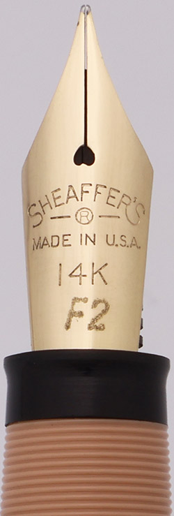 Nib FINE 14k open nib marked F2. It is in great condition, with a nice tipping, and feels quite smooth and has a bit of softness.