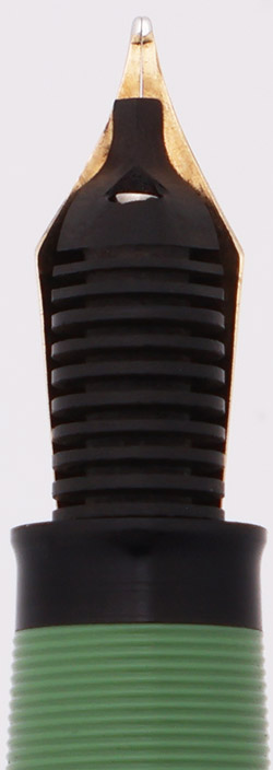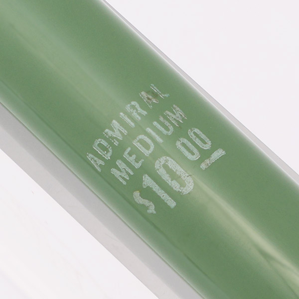 Nib MEDIUM 14k #5 nib. There's a chalkmark on the barrel indicating the nib size. The open nib is correct for the Admiral model. It's smooth and firm with nice tipping material and has a little spring.