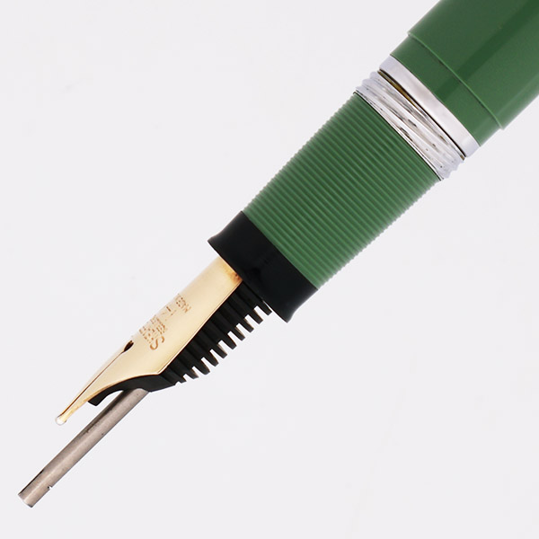 Condition Excellent + condition. There is microscratching and light handwear. No cracks or chips. The chalkmark on the barrel looks really great. The grooves near the section look perfect - no marks or interruptions. The knurling on the blind cap also looks great. The cap band and clip have microscratching and polishing marks, but no brassing or plating wear. There are no major scratches or personalization. The imprints are clear.