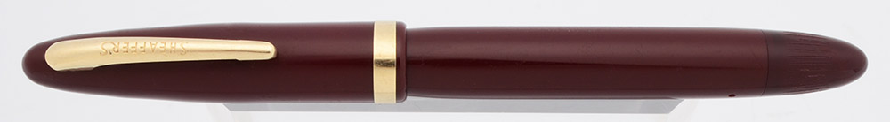 Condition Very nice condition with no cracks or dents. This is a shiny, classically styled pen in a nice color. The barrel has marks caused by the cap lip and moderate scratching. The cap has moderate to heavy scratching, especially near the top of the cap and alongside the top of the clip. There are some small dot marks on the cap just above the cap band. The cap band and the clip have a lot of small scratch marks though there is no plating wear. The imprints are clear.