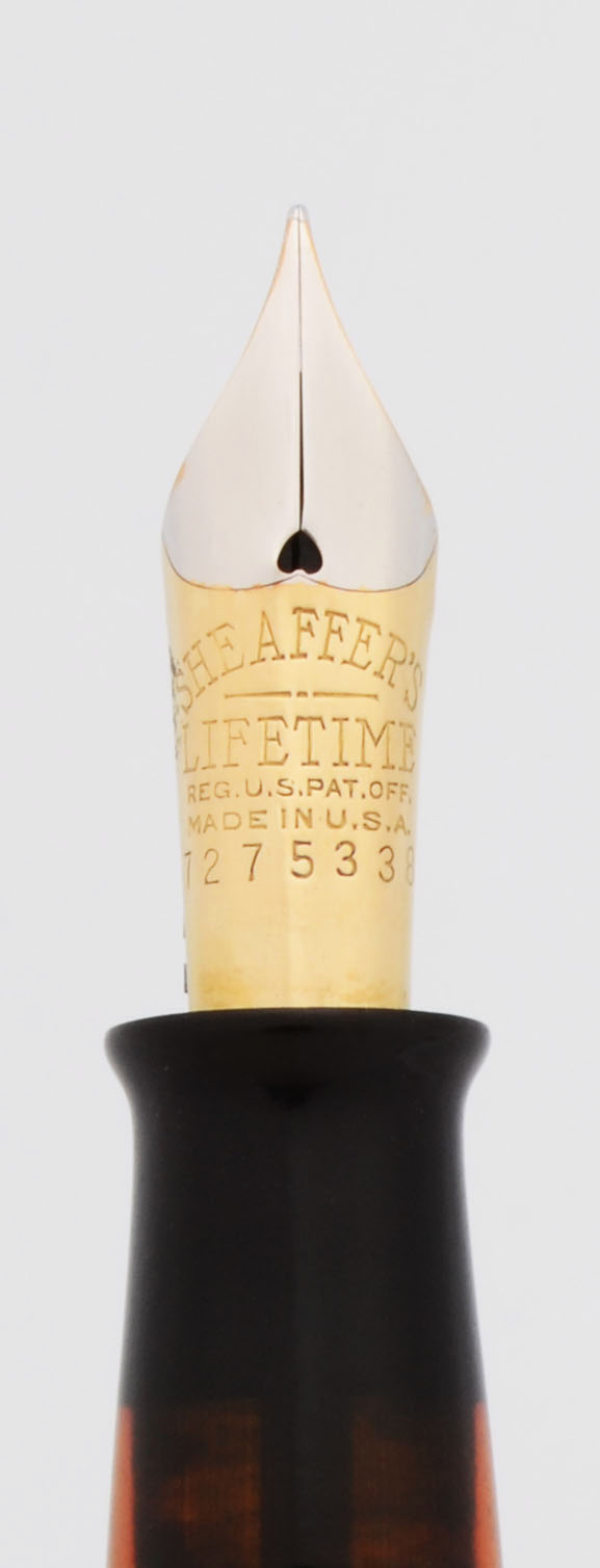 Nib FINE two-tone 14k Sheaffer Lifetime nib with serial number 727533, verging on the extra fine.