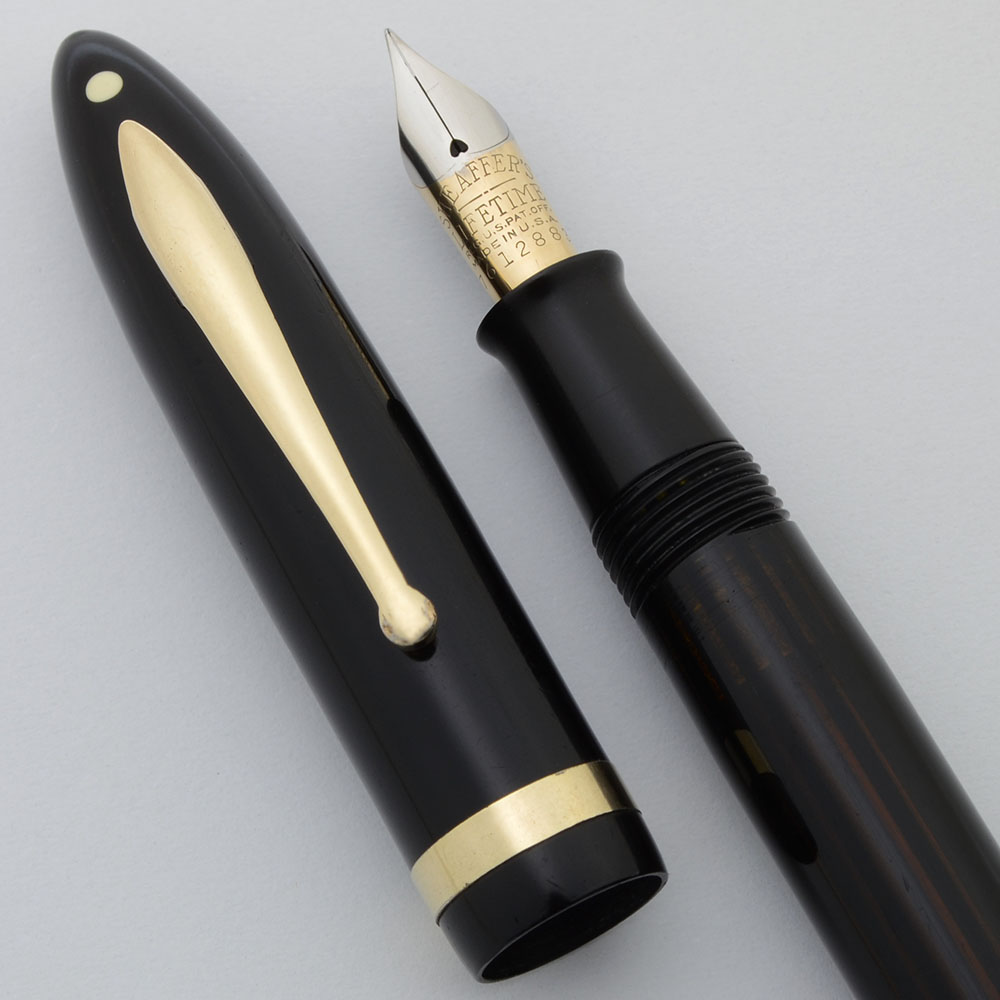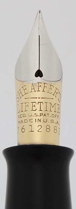 Nib Fine flexible two-tone 14k open Lifetime nib is in nice condition. See writing sample, below. Flexible nibs are rather uncommon in Sheaffer Balances.