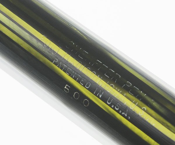 Condition Excellent condition. The coloration is beautiful and the pen is shiny. The barrel has horizontal capping lines and some thin scratch lines all the way down the barrel. The cap has moderate scratching to the left of the clip and some lighter scratches to the right of the clip. The clip, cap ring, and lever have light scratches but no plating wear or pitting. No cracks, chips, dings or dents. The imprint is is clear.