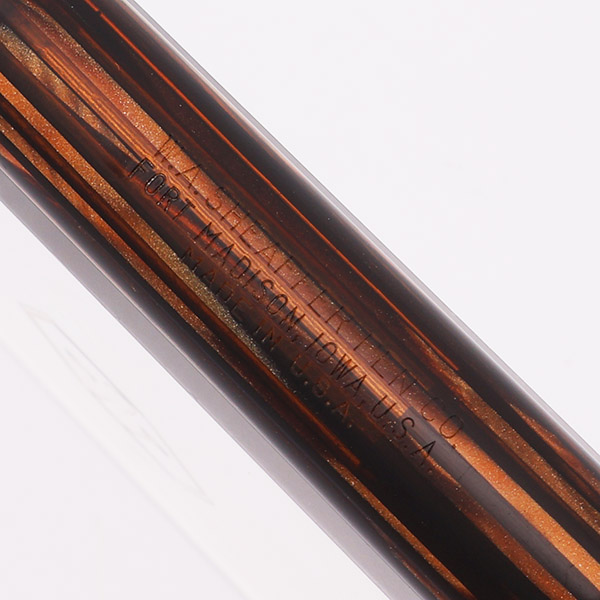 Condition Superior condition with no cracks, chips, dents, or dings. This is a beautifully colored, classic pen, that is shiny and that has excellent ambered barrel clarity. The cap and barrel have light scratching. The barrel has marks caused by the cap lip. The cap band has light microscratching as does the clip. The clip has one tiny scratch on the front side near the top. The white dot is perfect. The imprints are nice and clear.