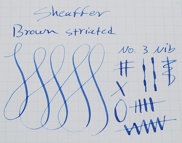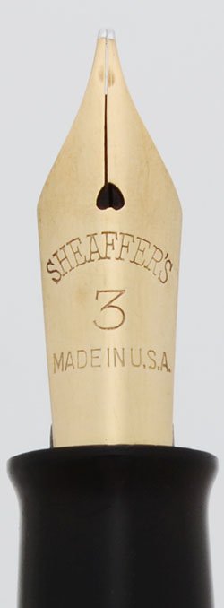 Nib Fine 14k Sheaffer's #3 nib is smooth with a nice quantity of tipping material. It's quite springy, even semi-flexible, and will produce a line ranging between medium-fine and broad. See writing sample.