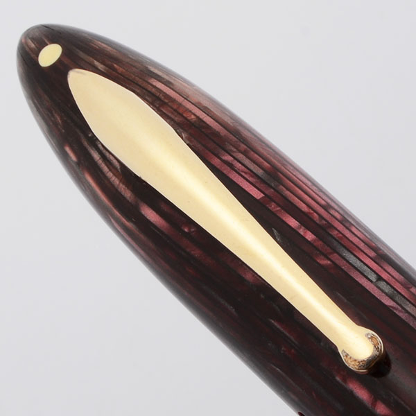 Condition Excellent condition. The clip has some plating wear at both ends and along the sides. The top of the cap has some scratches and a few fissures that radiate from the peak (common with the striated patterns). The cap band has some brassing along the bottom edge. The barrel has light microscratching and handwear. There are no cracks or chips, dings, dents, or personalization. It's fully restored and working well.