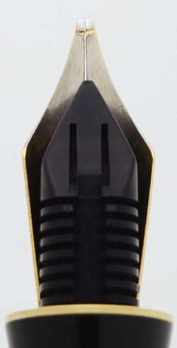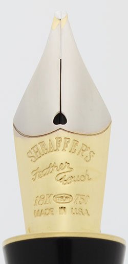Nib Factory Stub 18k Nib. Sheaffer's Feather Touch nib is smooth and slightly flexible with nice tipping material. The base of the section has an S on it for "Stub." A little of the masking is starting come off the top of the tines.