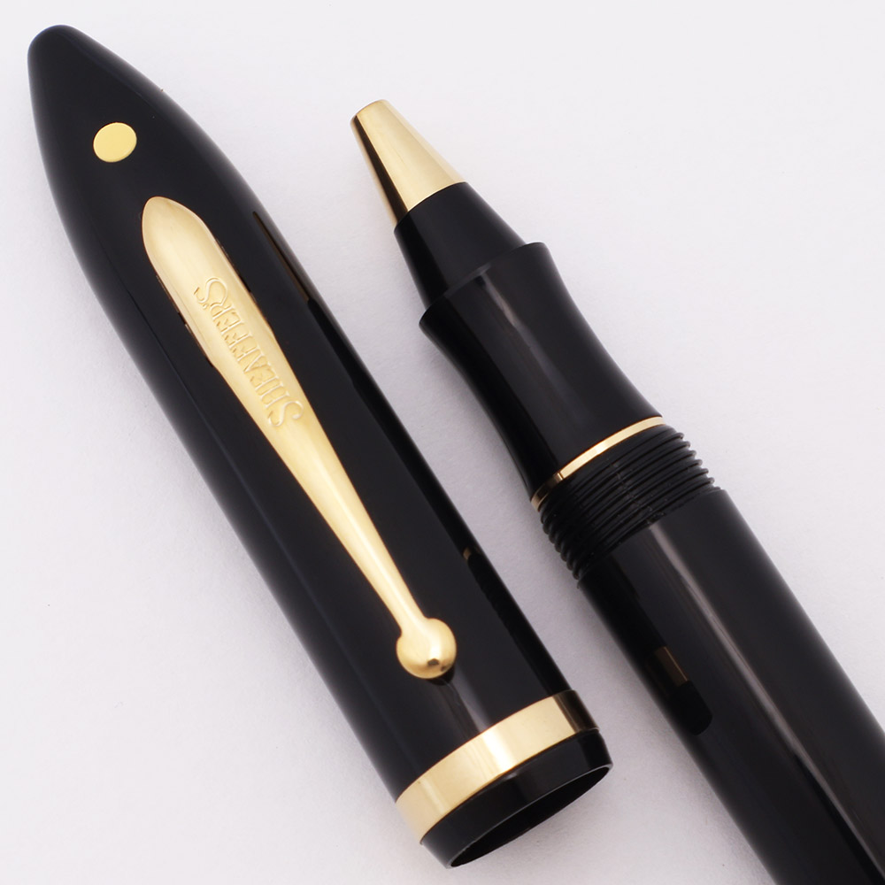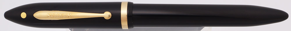 Color Black resin acrylic with gold plated trim and a 1/8" cap band and a white dot above the clip.