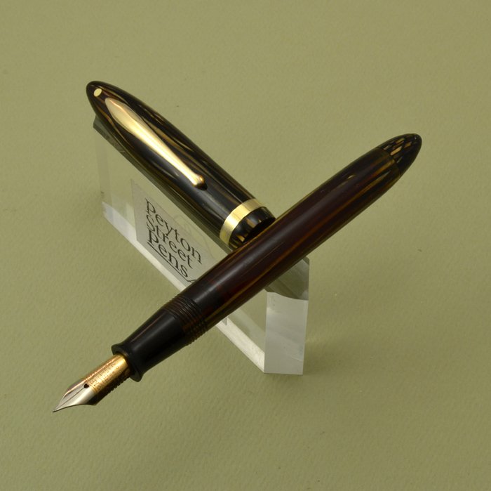 Excellent condition with no blemishes and no cracks. The pen is nicely shiny and smooth to the touch, with a good imprint. Excellent trim .... a little wear on the cap band, but the clip is almost perfect. Excellent visibility thru the barrel. |