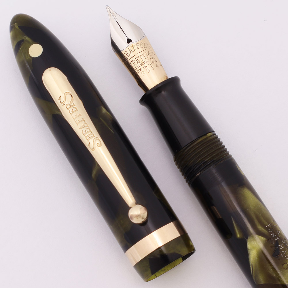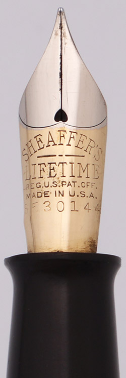 Nib FINE two-toned gold Sheaffer Lifetime nib has a serial number: 5530144. It's firm and smooth with good tipping material.