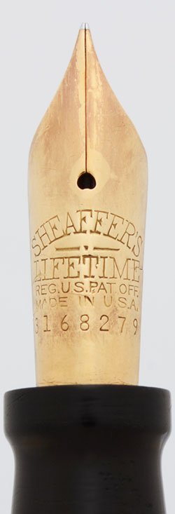 Nib Fine gold nib. It says Sheaffer Lifetime on it and is single tone with serial number 3168279.