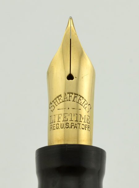 Nib | 14k "Sheaffer Lifetime" fine nib is in great condition with a good quantity of tipping material. Firm, no flex. It's a huge nib in awesome condition. |