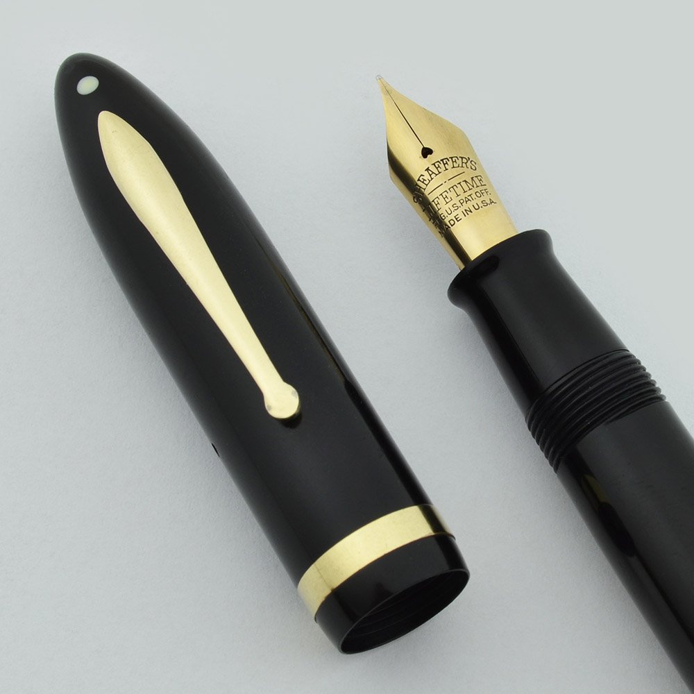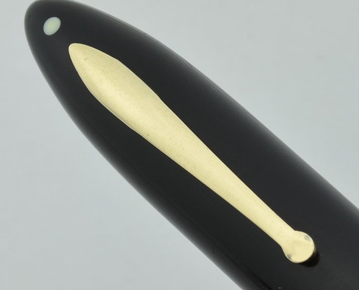 Condition Excellent condition. There are only small scratches on the cap and barrel, no cracks or noticeable scratches. There's a tiny bit of brassing on the round end of the clip. The pen is very clean, with no cracks, chips, dings, dents, or personalization. The imprint is really great, very readable. It's fully restored and working very well.