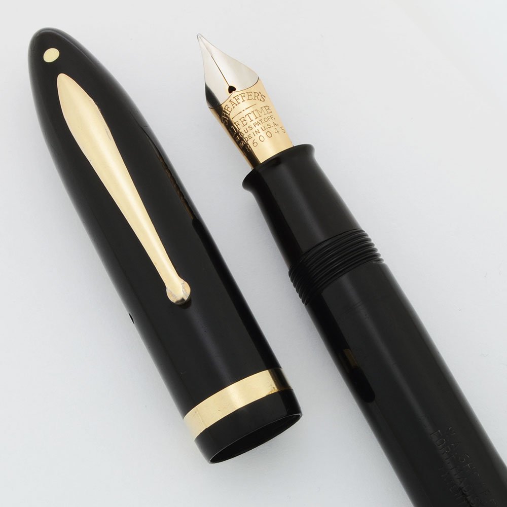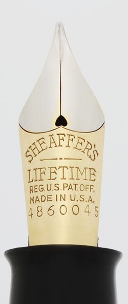 Nib MEDIUM-FINE gold Lifetime nib. It's smooth and firm. Near mint in terms of the tipping material. It has serial number 4860045.