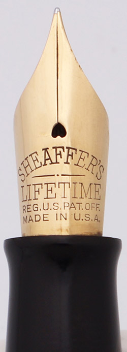 Nib Fine 14k Sheaffer Lifetime nib. The feed is white, which is unusual.