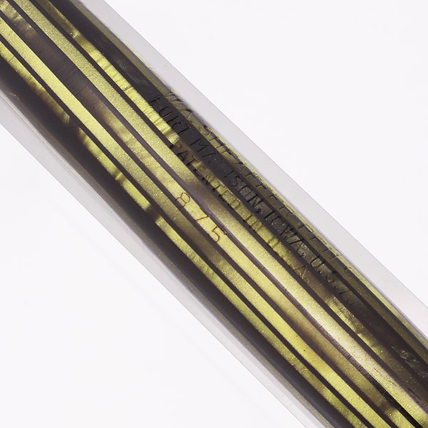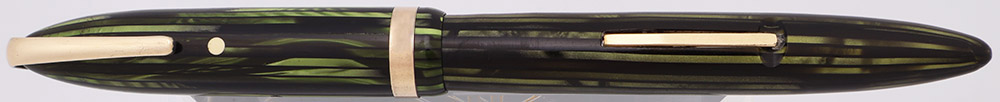 Color Green striated with gold plated trim, a white dot on the cap below the clip, and a military style clip.