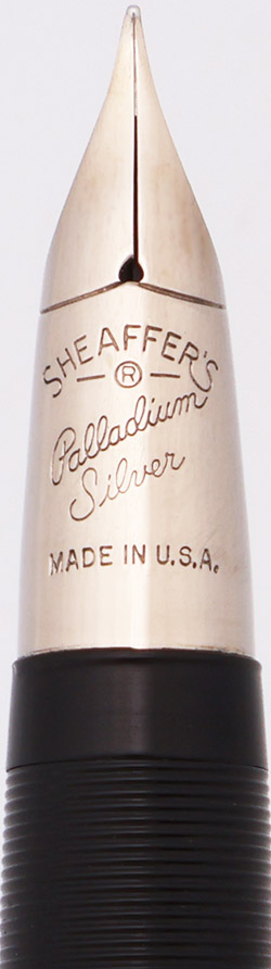 Nib FINE (unmarked) Palladium Silver Sheaffer's Triumph style nib is smooth and firm with nice tipping material. The nib has a gentle "Waverly" upturn.