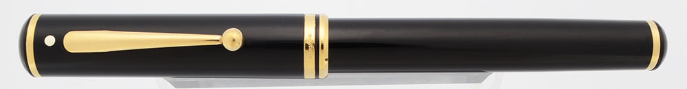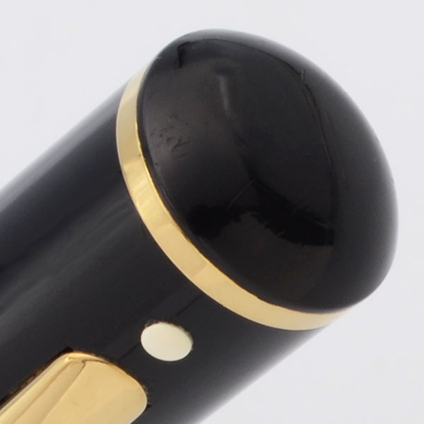 Color Black with 23kt Gold Plated Trim. It has the white dot above the clip and a ball ended clip.