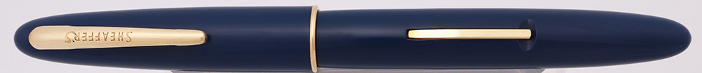 Condition Superior condition with no cracks, chips, dents, or dings. This is a dark blue, shiny pen that is relatively short and that is in a pleasing classical design. The cap and barrel are excellent with only a fine scratch here or there. The lever looks good. The thin wire cap band has tiny microscratches. The clip has light microscratching. The imprint is clear.